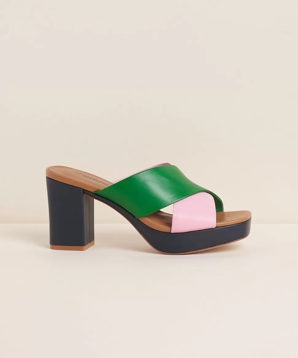 A Colorful Cs Original Mule Heel. Criss-Cross Multi Mismatch Leather Uppers, 3.5″ Heel And 1″ Overall Platform, Squared Toe And Memory Foam Insole. Slide Into Sylvia And Let The Compliments Roll In All Day Long.