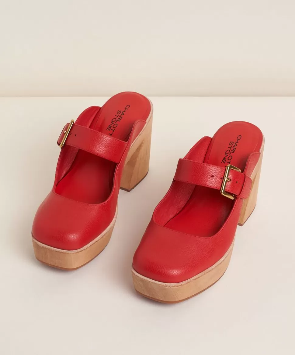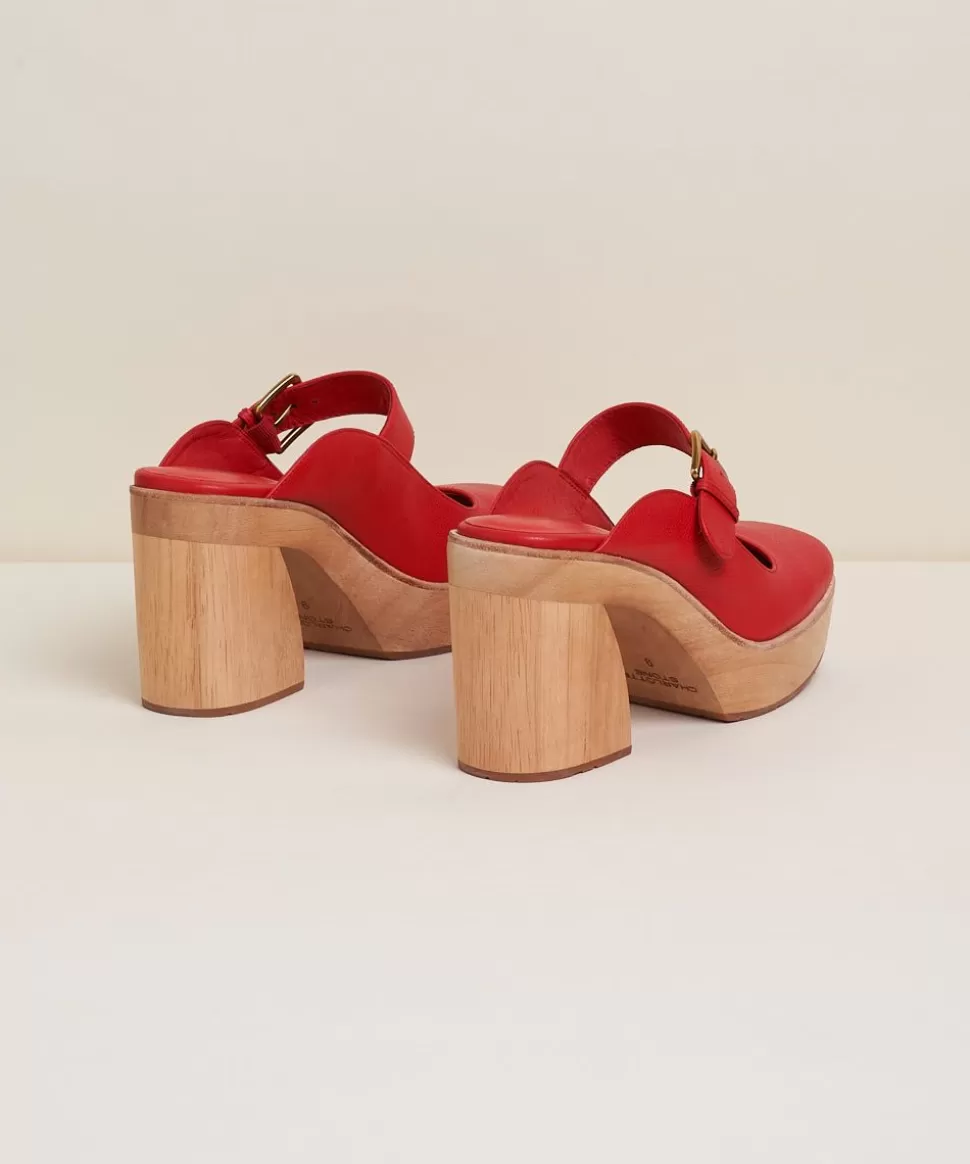 A Mary-Jane Inspired Clog With Franominal Details. Fran’S Blueprint Base, But Wood: Sculpted Heel, 3.75″ With 1″ Platform Height For Comfort, Open Back With All-Leather Uppers And An Oversized Buckle Strap. She’S Like Salted Dark Chocolate, When You Want Something Sweet But Not Really