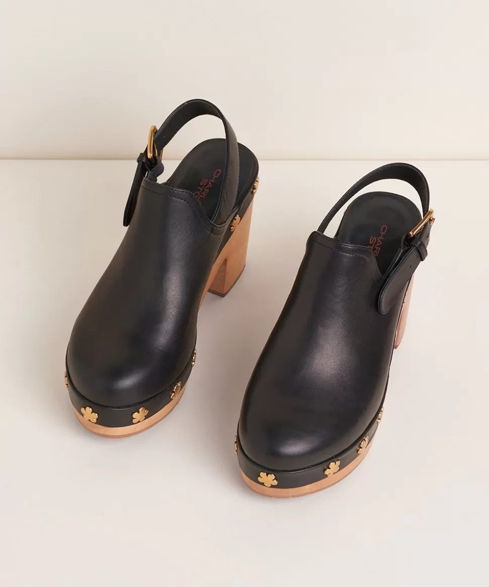 A Fan-Favorite Studded Platform Clog. All Leather Uppers, Memory Foam Insole, Brass Flower Studs And An Adjustable Back …