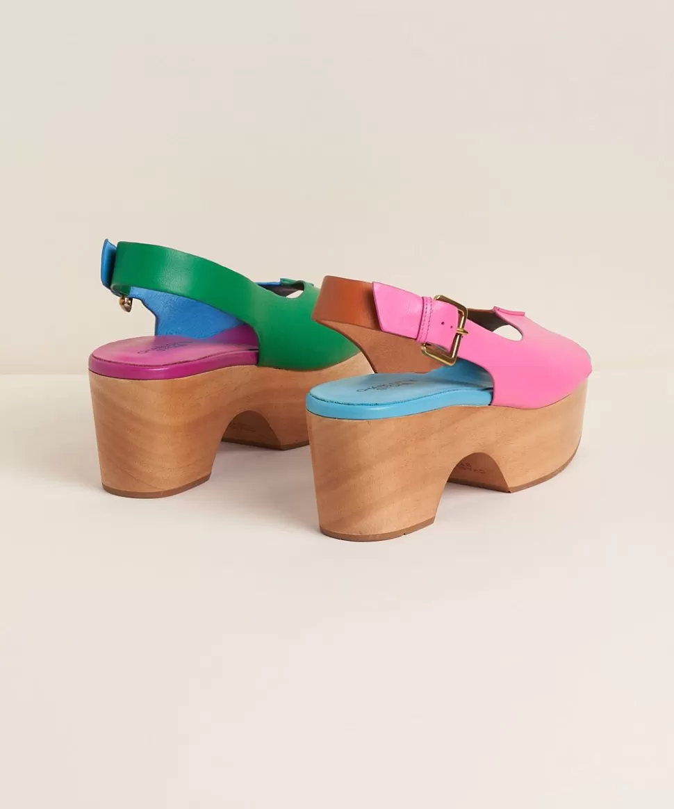 A Platform Clog With Mismatched Leather Uppers. Secure Adjustable Slingback Strap, 3″ Heel Height With 2″ Platform (Feels Like A 1″ Overall Heel Height). Like Her Colorway, Cabana, She Makes Us Feel Like We’Re In Vacation Mode.