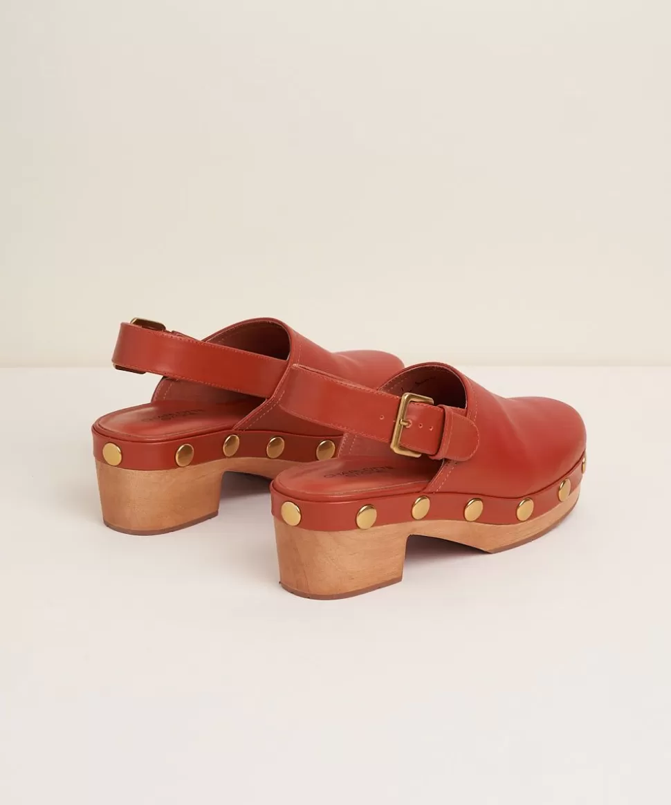 Part Martino, Part Hari—A Low Heeled Slingback Clog With Tons Of Brass Studded Personality. 2″ Heel & 1.5″ Platform, A…