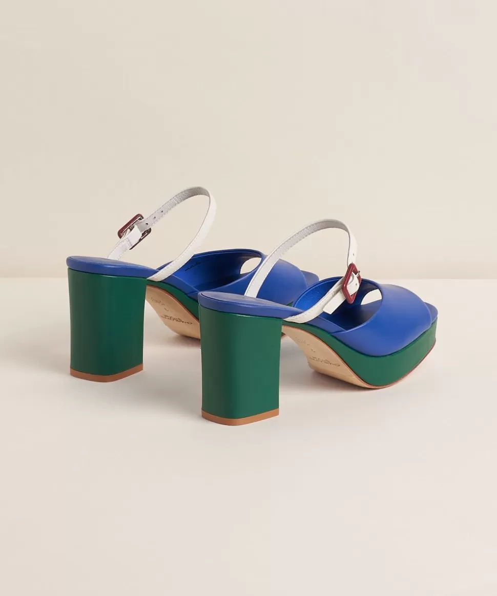A New Mule Heel Reminiscent Of Best-Selling Sylvia’S Silhouette. Multicolor Leather Uppers And Base, Adjustable Upper Strap With Covered Buckle, 3.5″ Heel And 2.5″ Platform. A Cheeky And Sophisticated Shoe, Much Like Ourselves ?