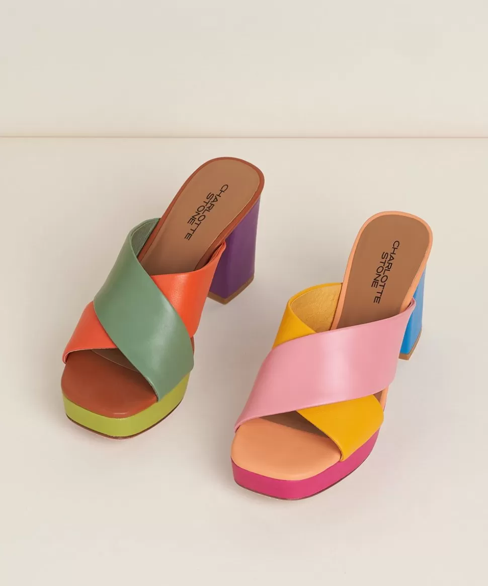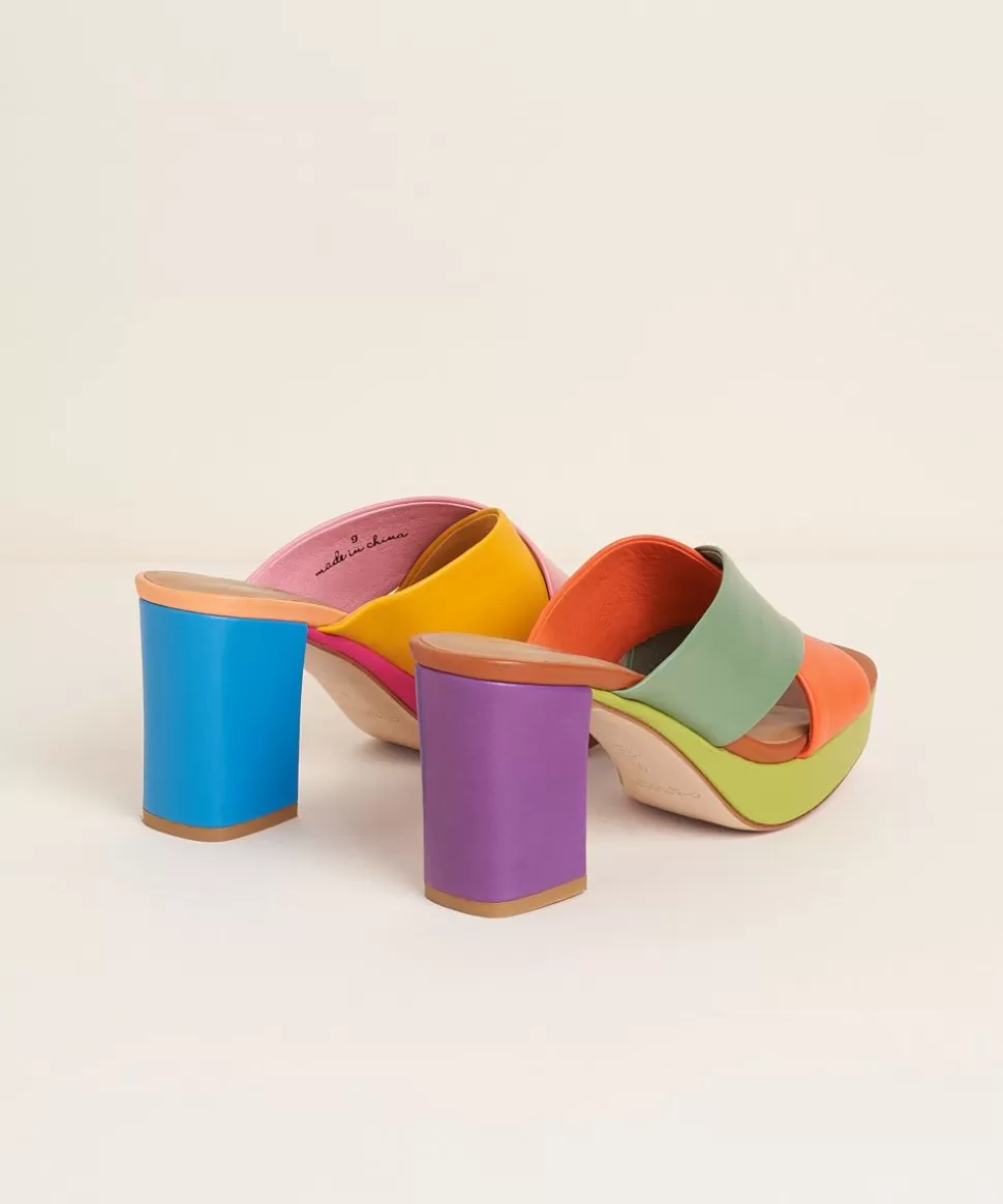 A Colorful Cs Original Mule Heel. Criss-Cross Multi Mismatch Leather Uppers, 3.5″ Heel And 1″ Overall Platform, Squared …