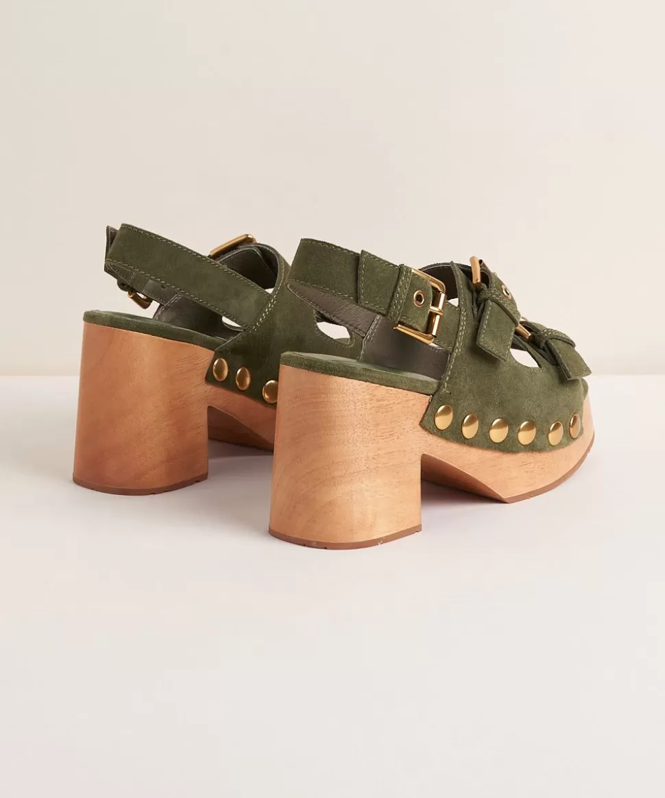 A Brand New 70’S Collegiate Style Sandal Clog. She Has It All: Luxe Suede Uppers, Adjustable Slingback Strap, 3.75″ Slightly Flared Heel. Lino Has Brass Studs And Hardware For Days But Will Make It Look Like You Have Legs For Weeks.