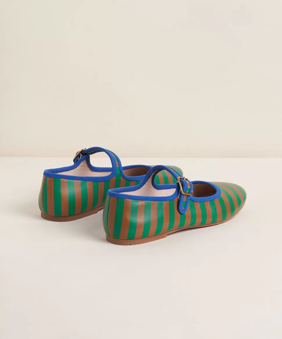 A Brand-New Collegiate Style Mary-Jane Ballet Flat With Multicolor Striped Leather Uppers. Adjustable Strap, Memory Foam…