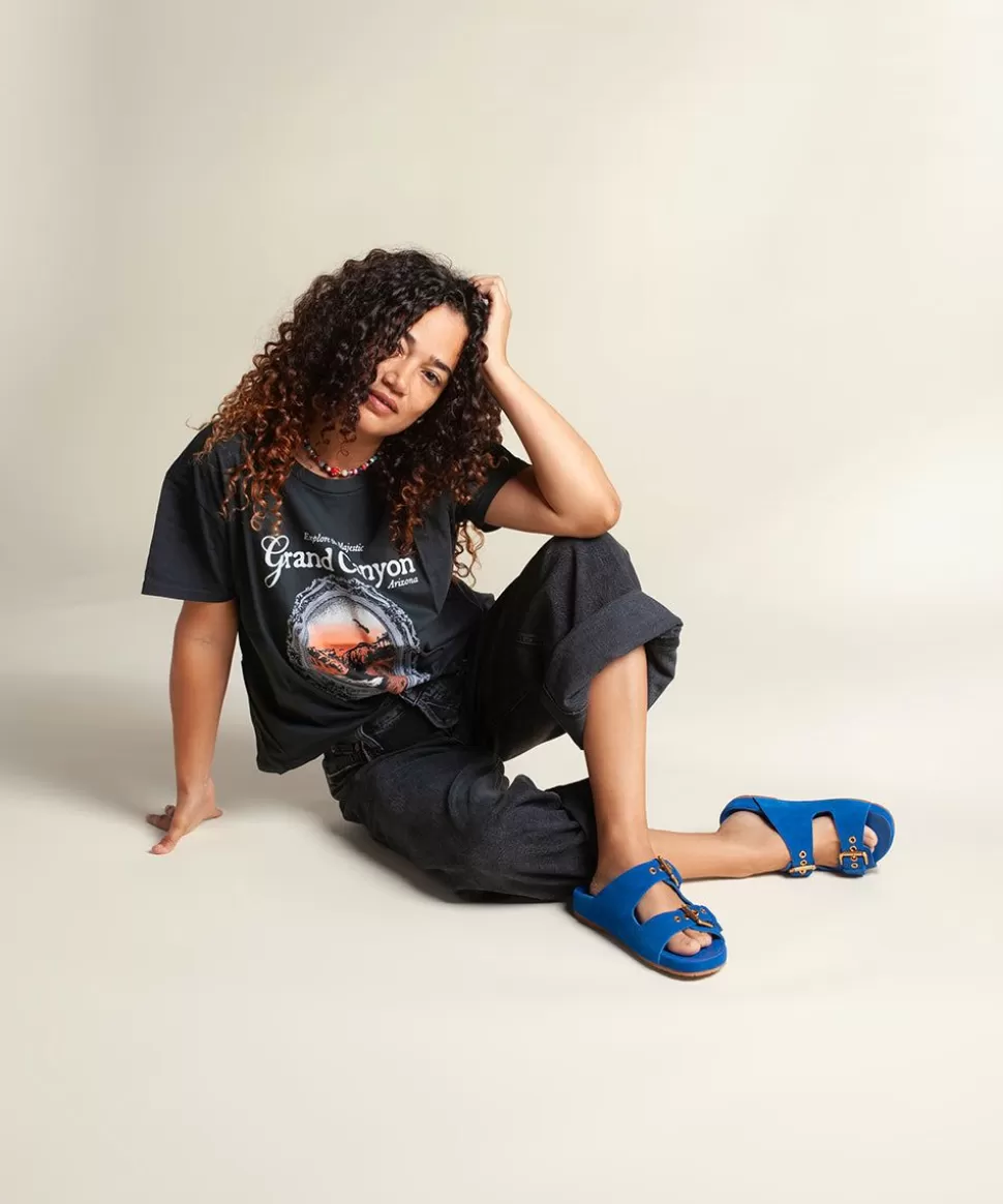 A Brand-New Ultra Chic Sandal With Oversize Brass Buckles. Our Classic Dolly Molded Footbed Wrapped In Elegant Suede Uppers With Fully Adjustable Straps. Stef Is So Low-Key Luxury, She’Ll Give You Main Character Energy On Your Way To Pilates & The Coffee Shop ✨