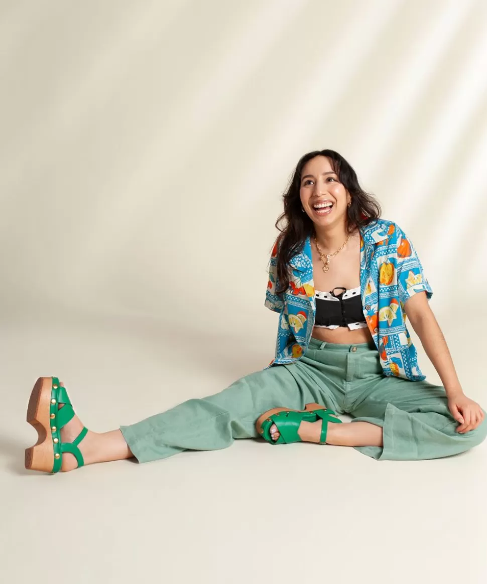 An Eye-Catching Platform Clog Style That Always Sells Out. Vibrant Criss-Cross Leather Uppers, Brass Studs, 3″ Heel, 2″ Platform, Memory Foam Insoles, And Ankle Strap For Max Support. If Your Size Is Still Available, Consider It A Sign That You’Re Meant To Be With Dermot.