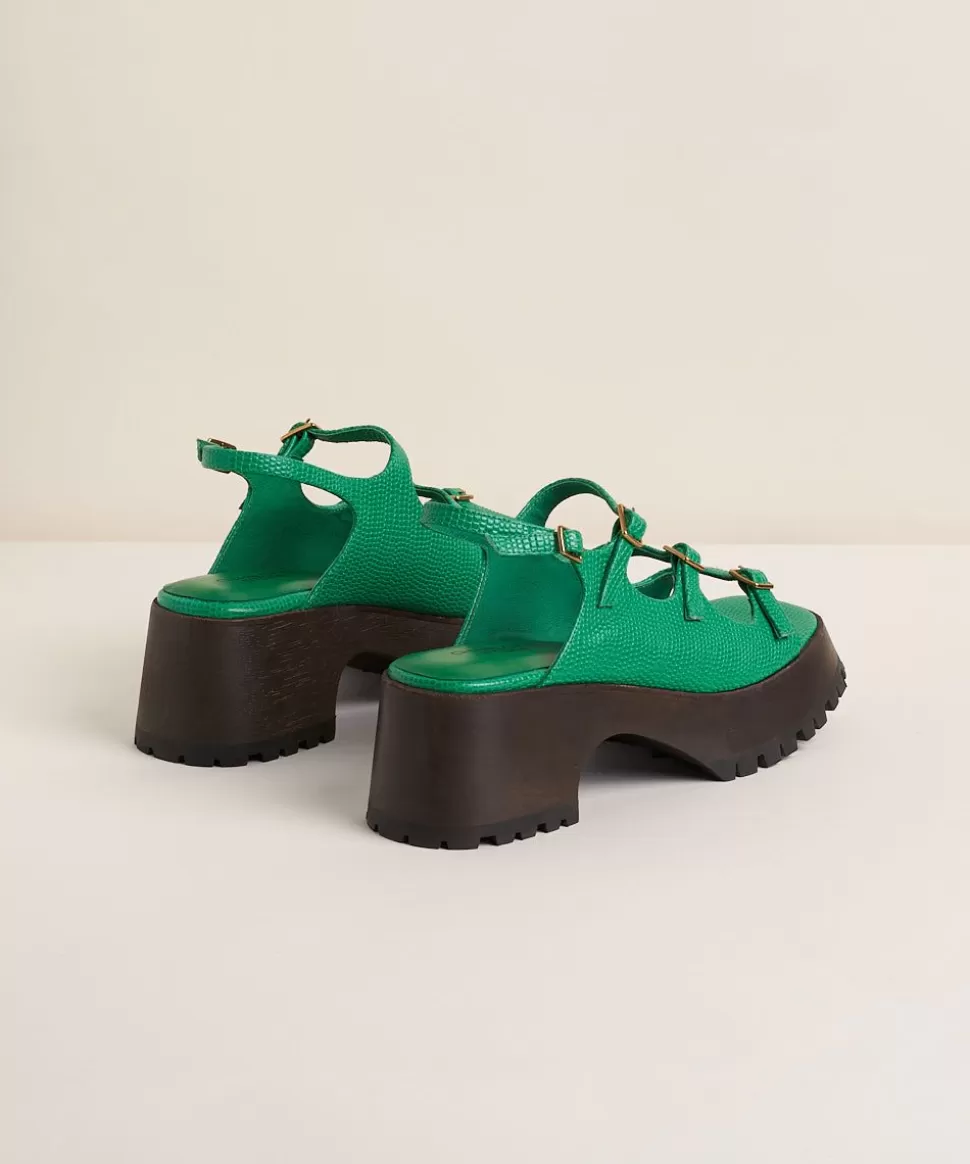 A Brand New Mary-Jane-Esque Low Clog Having Her Own Style Moment. Taking Cues From Carlos With A Dark Wood Base, Outsole Treading, And The Same 2.75″ Heel And 1.25″ Platform. Mini Tejus Embossed Leather Uppers, Three Adjustable Straps And Slingback Bring All The Security Needed To Take A Step Into The Limelight.