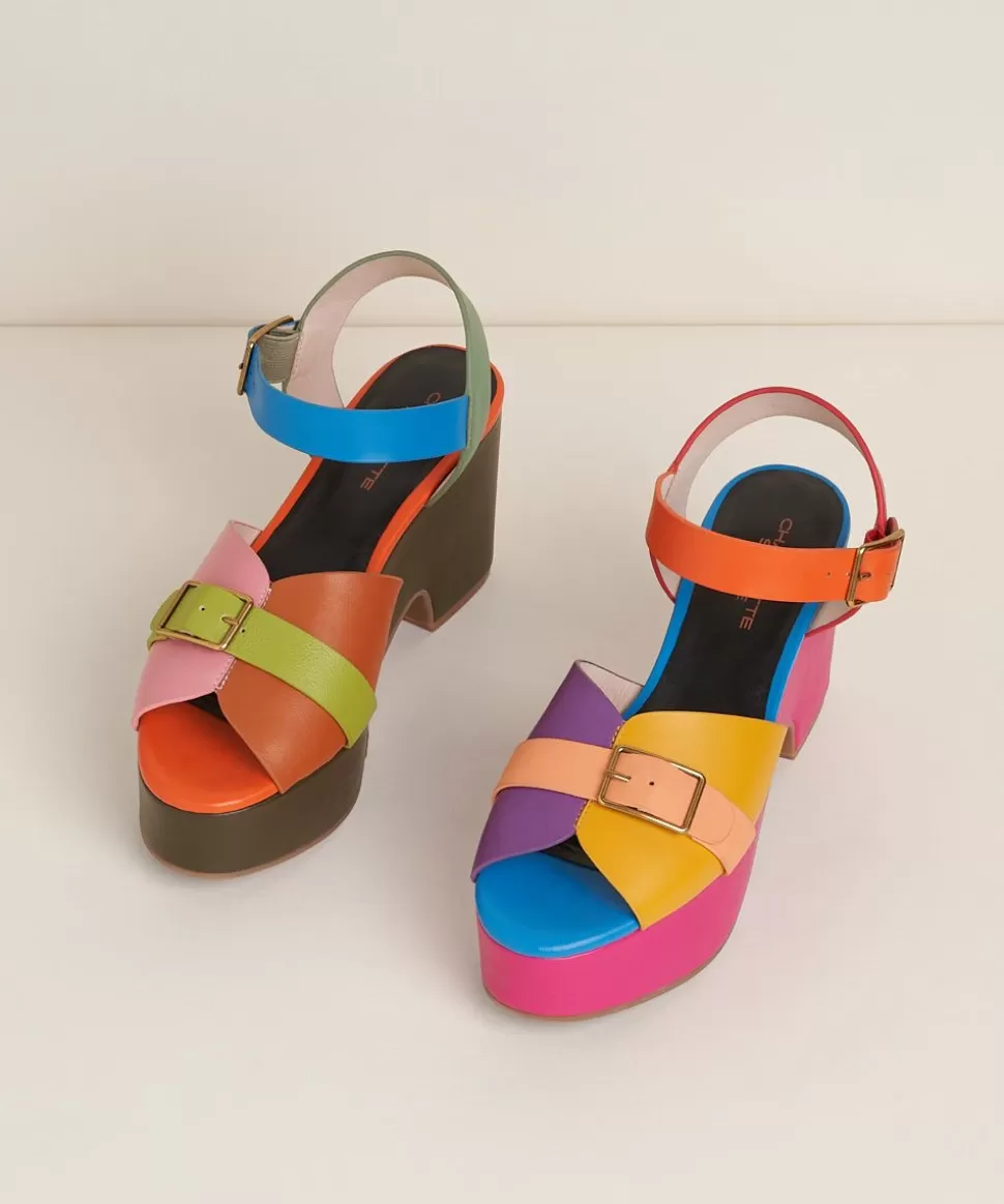 Our Core Best-Selling Lightweight Platform. All Leather Solid Or Mismatch Uppers, Adjustable Ankle Strap, And Decorative Front Buckle. With A 3.5″ Heel And 1.5″ Overall Platform, You’Ll Get Walkable Height To Go With Literally Anything In Your Closet.