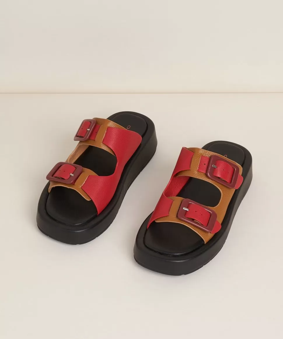A New Flatform Sandal In Two Multi Colorways. All Leather Uppers In Contrasting Colors With Covered Fully Adjustable Buc…