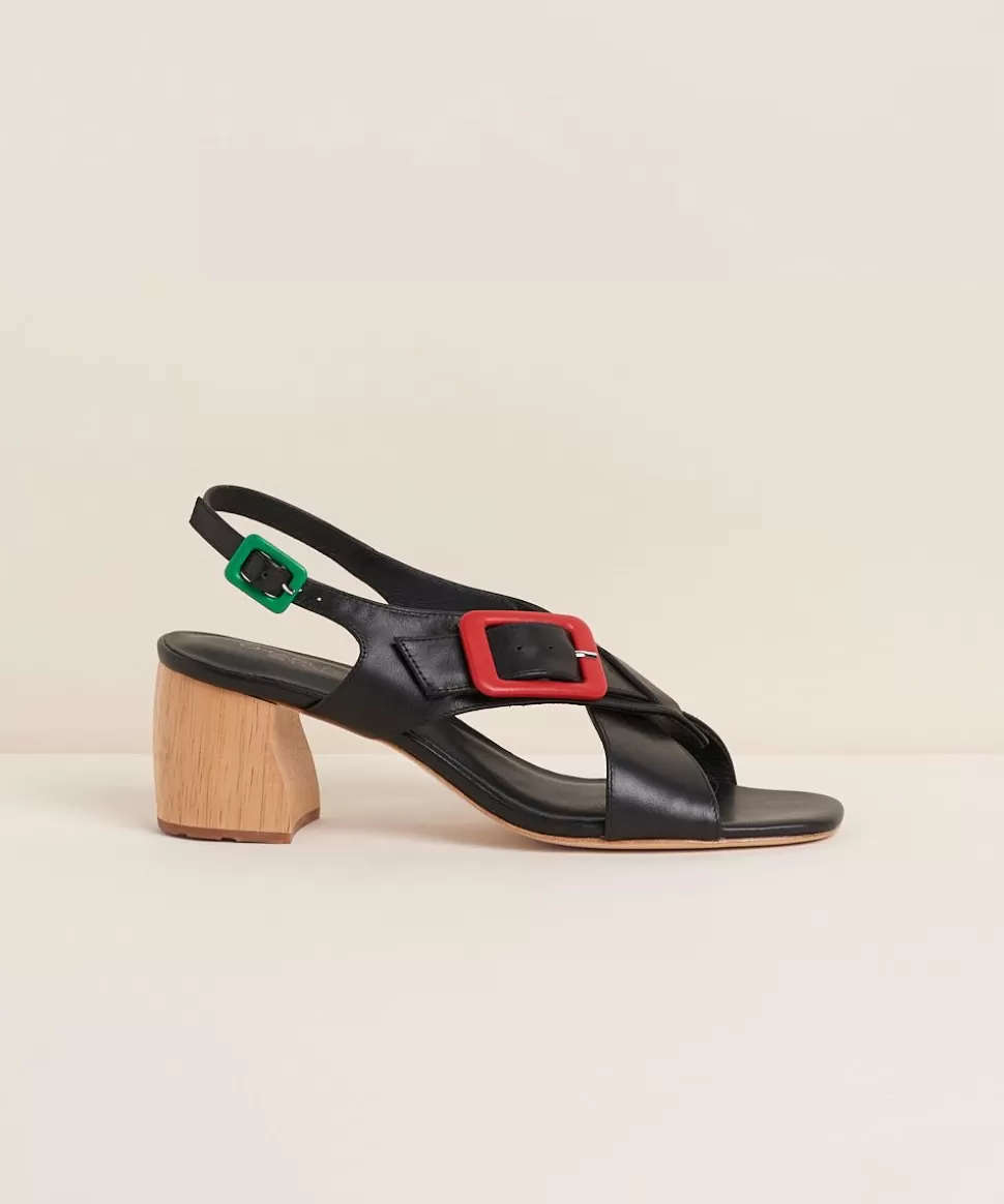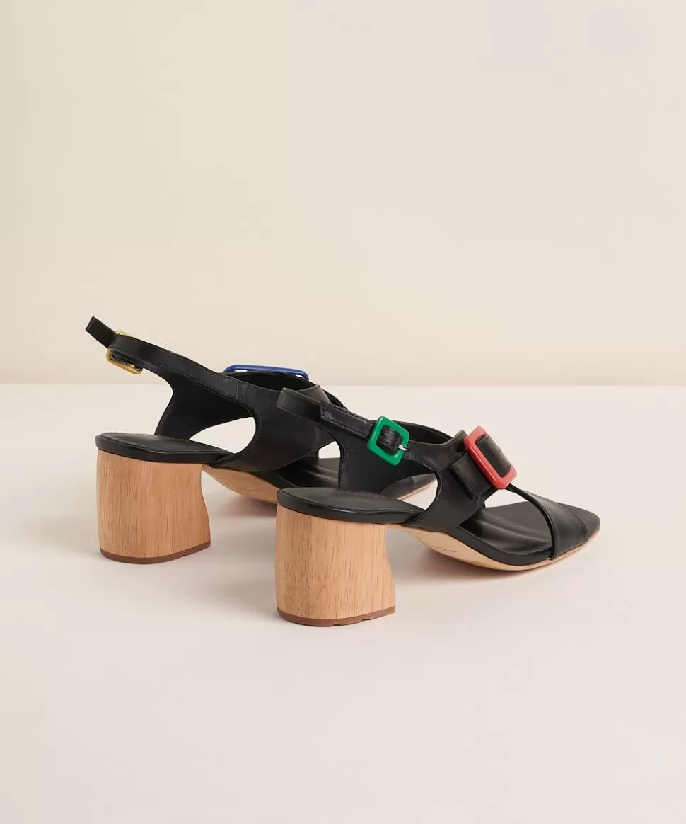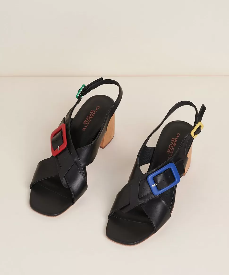 A Brand New Low-Heeled City Sandal With A Lot Going For Her. All-Leather Criss Cross Straps With Decorative Buckles, 2.5″ Solid Wood Heel, Adjustable Back Strap, Multi-Mismatch Or Black Uppers. The Only Box You Can Put Mel In Is A Shoebox ?