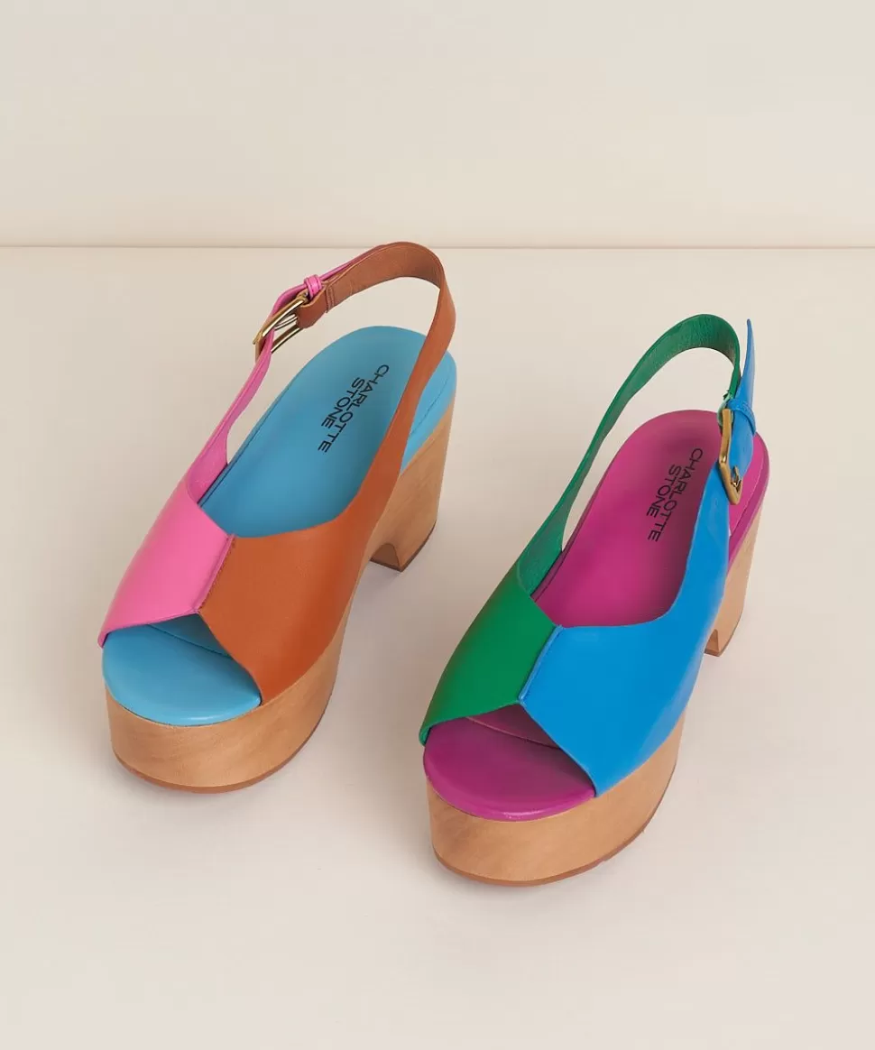 A Platform Clog With Mismatched Leather Uppers. Secure Adjustable Slingback Strap, 3″ Heel Height With 2″ Platform (Feel…