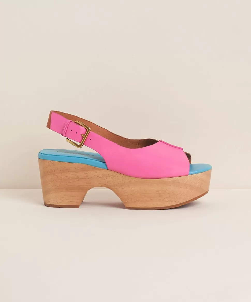 A Platform Clog With Mismatched Leather Uppers. Secure Adjustable Slingback Strap, 3″ Heel Height With 2″ Platform (Feels Like A 1″ Overall Heel Height). Like Her Colorway, Cabana, She Makes Us Feel Like We’Re In Vacation Mode.