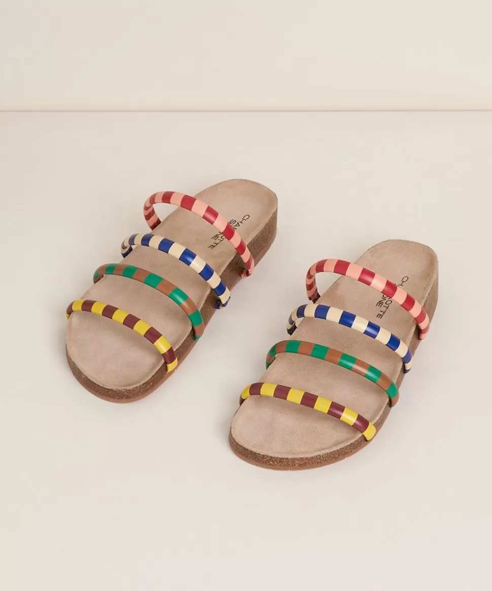 A Fan Favorite Classic Flat Sandal With Color. Cork And Memory Foam Footbed, Microsuede Sock, And Four Suede Or Leather Wrapped Upper Straps In Multi-Mismatch Solids And Stripes. Gloria, Hallelujah.